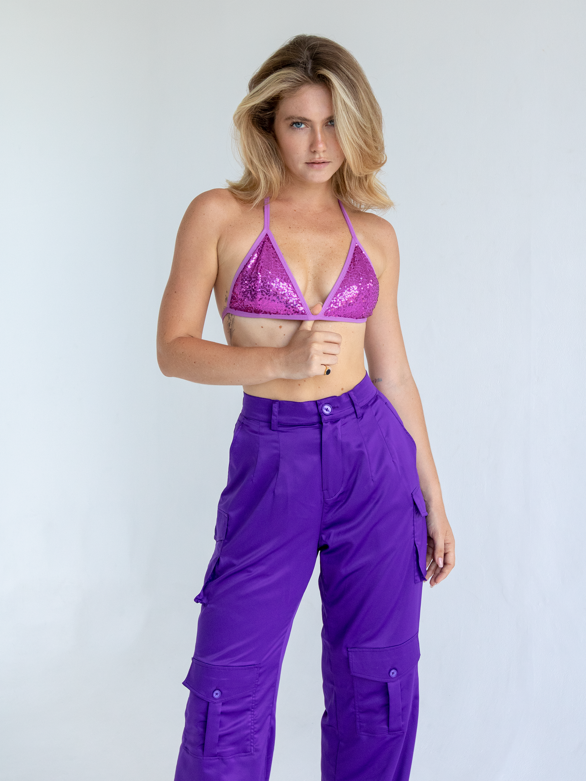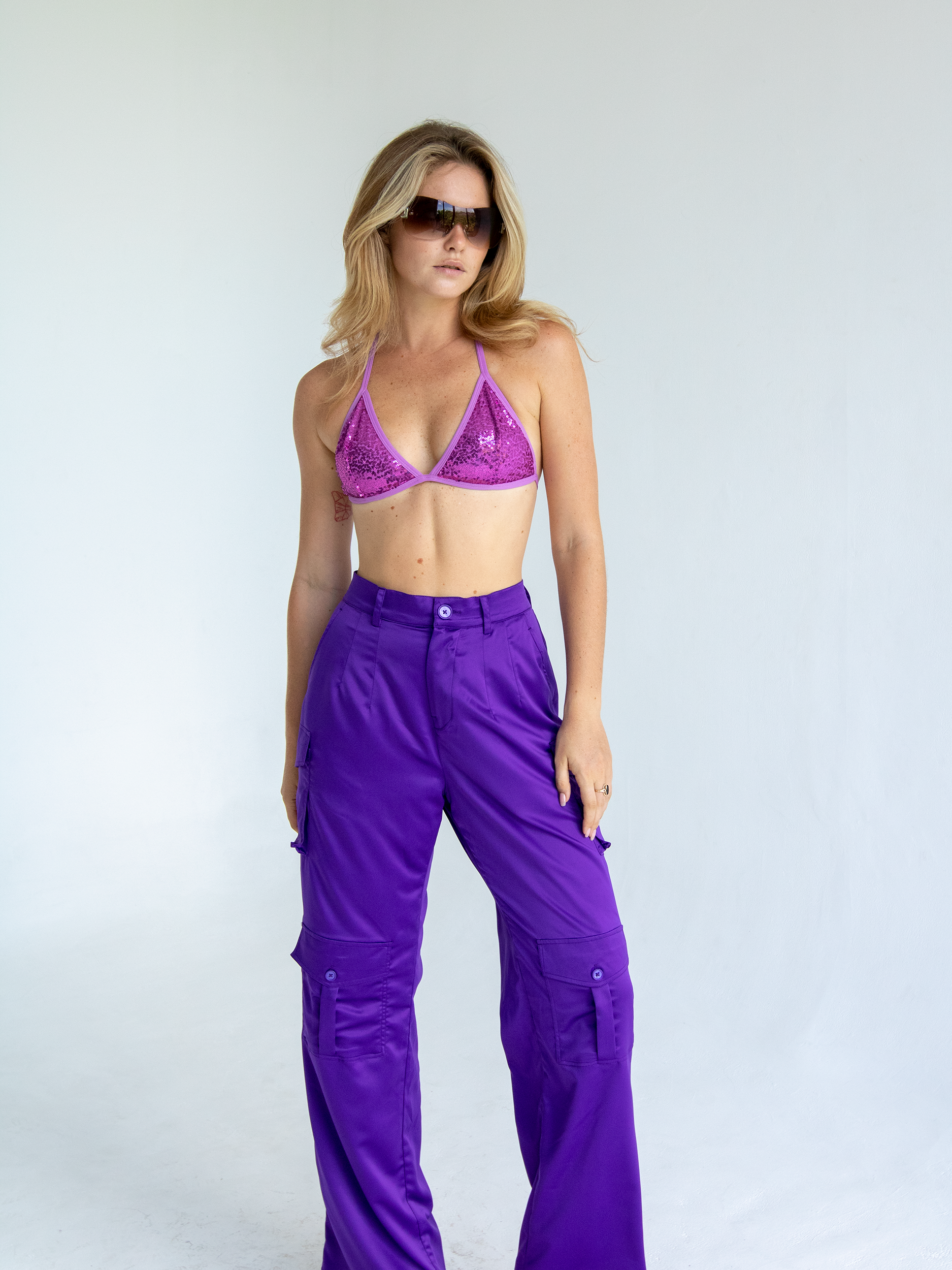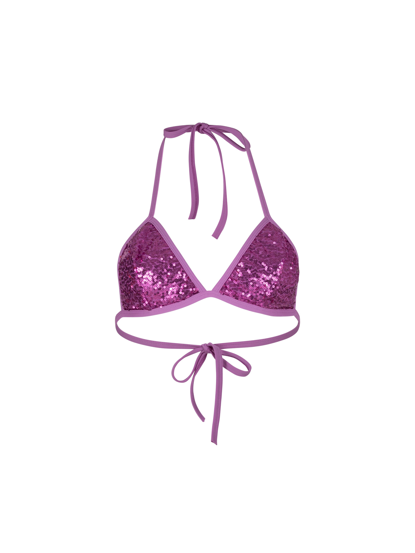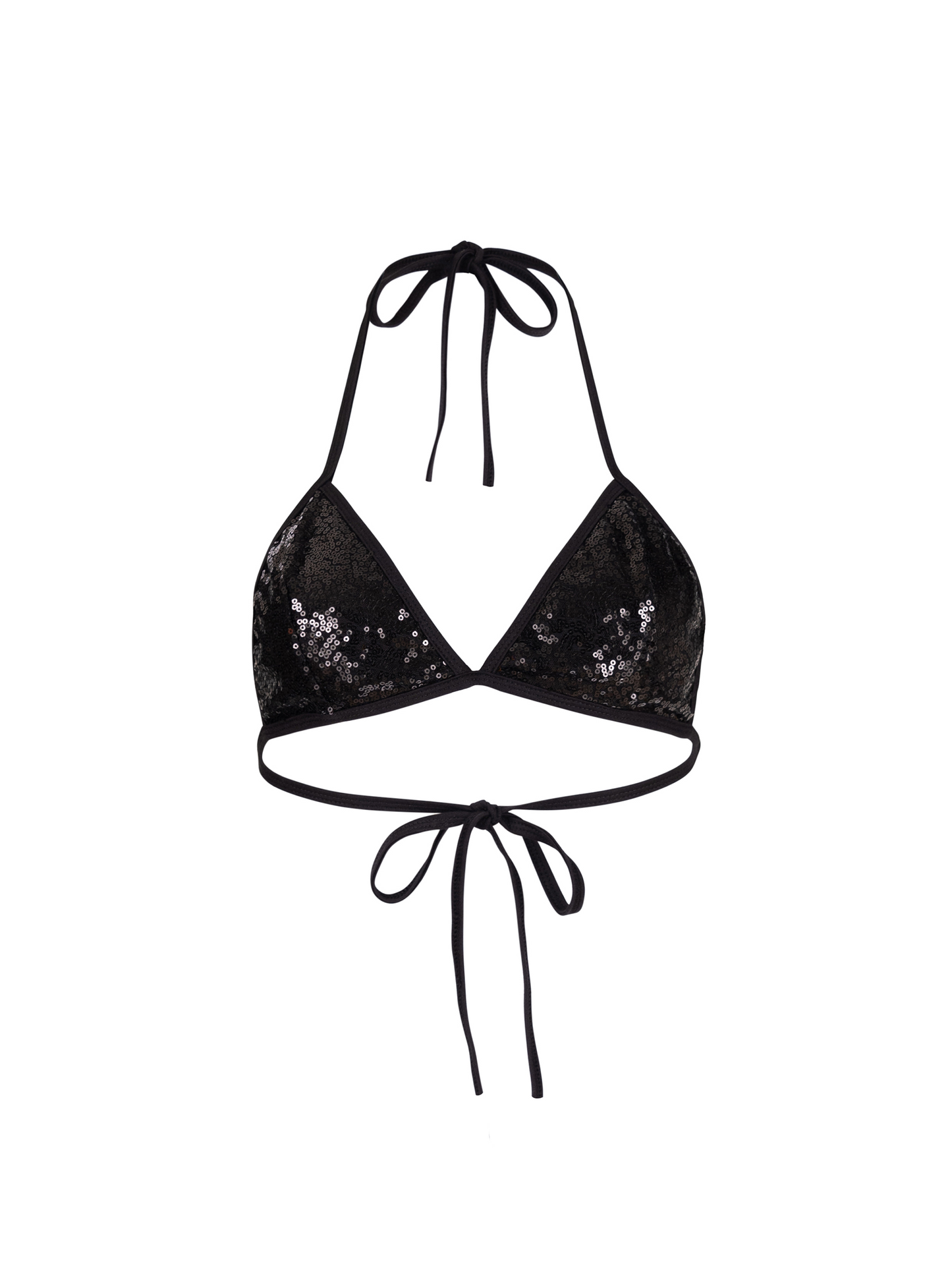 Featuring a shiny sequin material with glitter triangle tie.